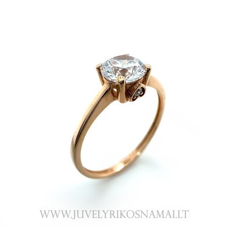 • Raudono aukso žiedas su cirkoniu 17 mm