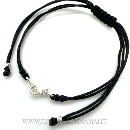 Juodo siūlo apyrankė su sidabriniu pakabuku "Nata"