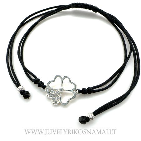 Juodo siūlo apyrankė su sidabriniu pakabuku Keturlapis dobilas