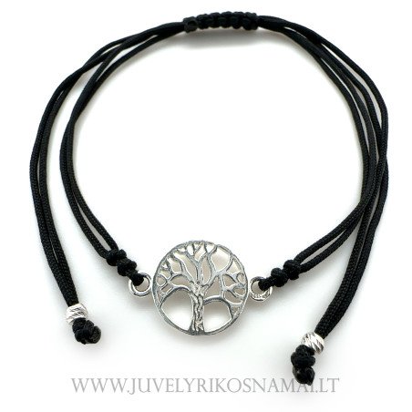 Juodo siūlo apyrankė su sidabriniu pakabuku "Medis"