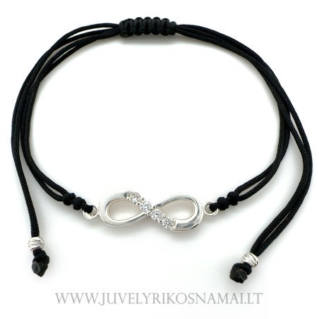 • Juodo siūlo apyrankė su sidabriniu pakabuku "Begalybė"