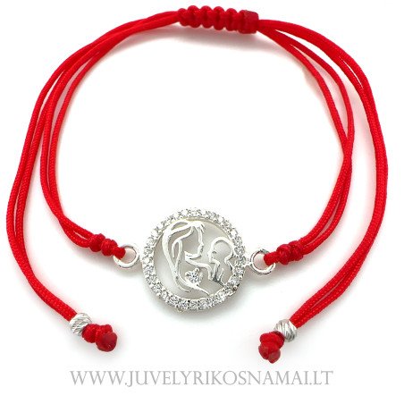 • Raudono siūlo apyrankė su sidabriniu pakabuku "Mama ir kūdikis"