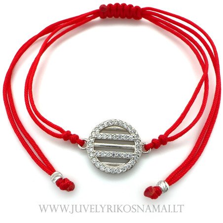 Raudono siūlo apyrankė su sidabriniu pakabuku
