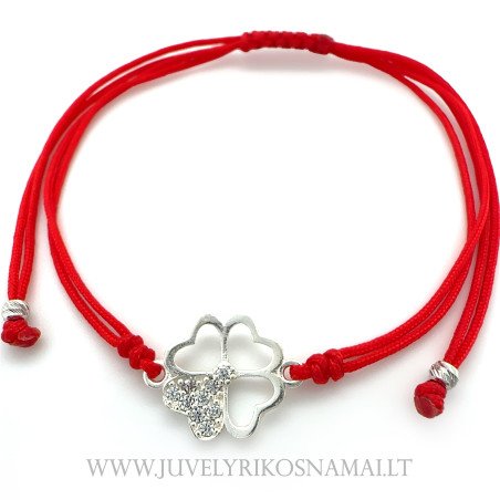 • Raudono siūlo apyrankė su sidabriniu pakabuku "Keturlapis dobilas"